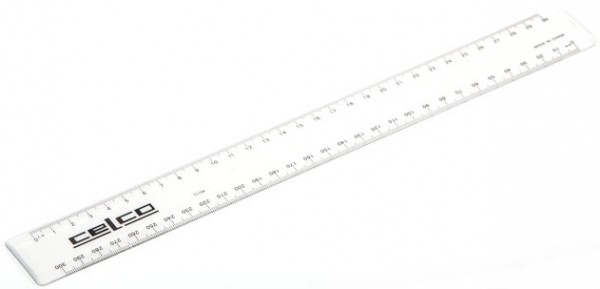 Clear 30cm school ruler.